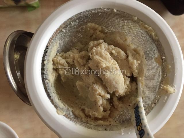 6.豆浆机操作完成后,将豆浆用网筛过滤一遍。