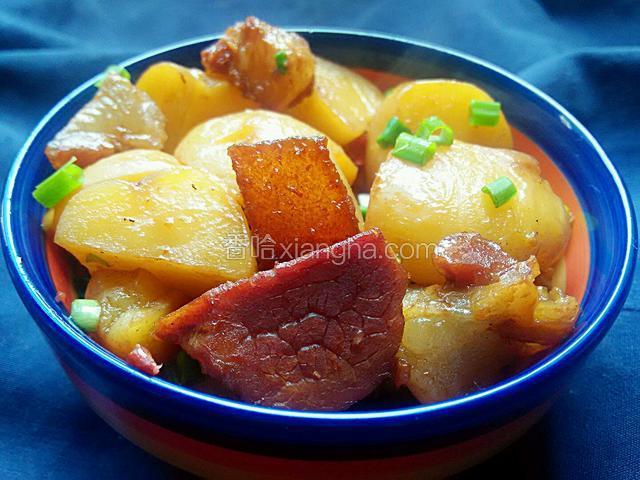 1.五花腊肉准备一小块,和适量的土豆,分别切块备好姜蒜花椒。因为腊肉特香此菜未用大料。