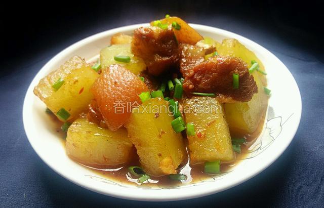 6.在焖煮时,将冬瓜去皮,切小块。