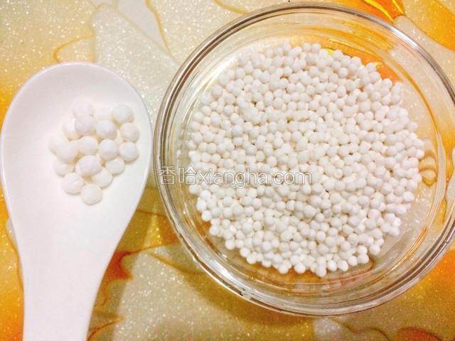 1.准备好适量的小西米,我这里是3人份。和上次的大西米对比一下,是不是差好多!