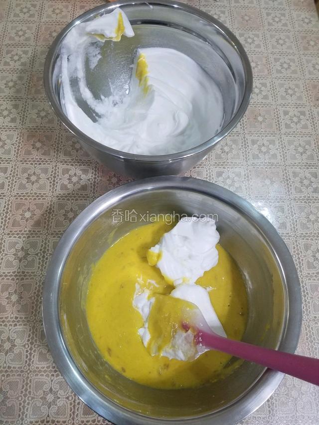 3.盆内倒入称重的牛奶、色拉油、和蛋黄。