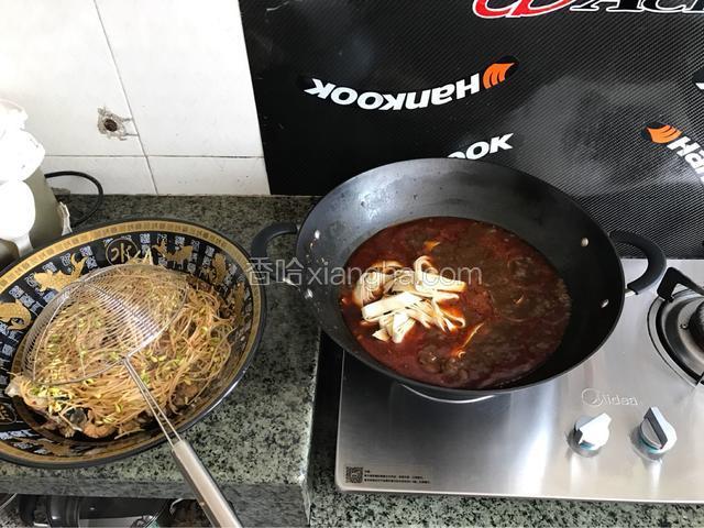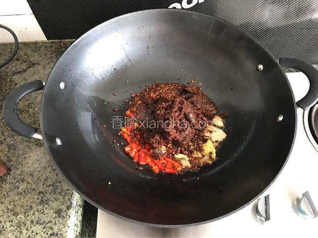 4.然后炒香料。把水煮鱼包打开,里面的香料炒香。