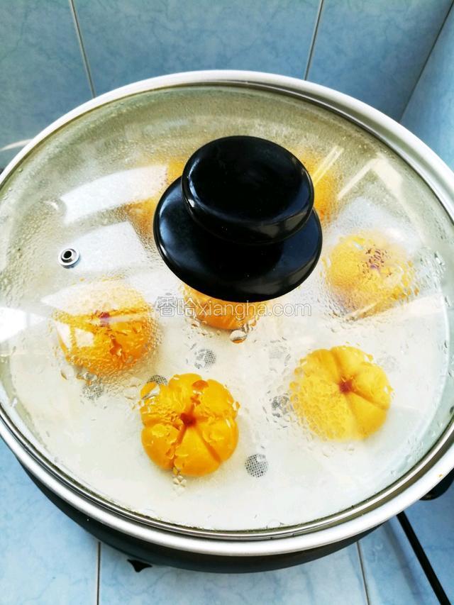5.接着就开始包南瓜饼了,捏成团子,然后压扁一点