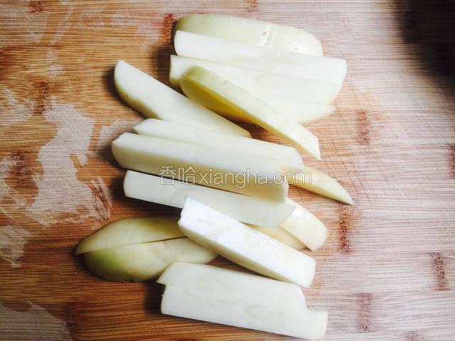 2.切成和手指一样粗的条状。