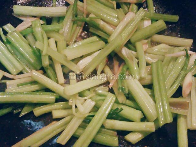 3.锅里烧开水,芹菜焯水捞出过凉水,再捞出控水备用。