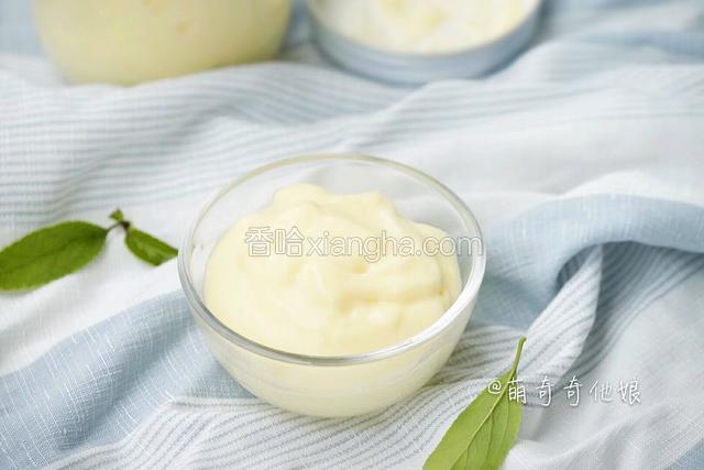 5.直到全部的油都加完,此时的沙拉酱已经非常稠了,并有一定的弹性。