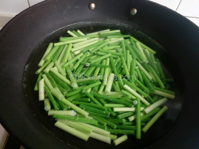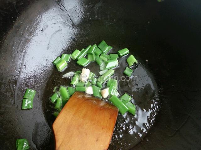 5.腊肉用热水煮20分钟,使肉变软。汤不要,去一下腊肉的咸度。
