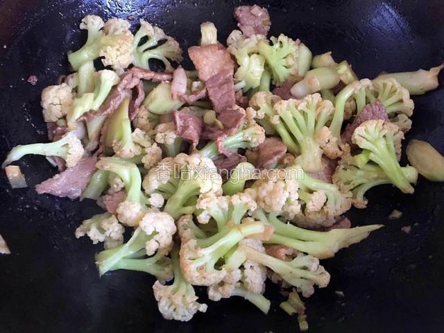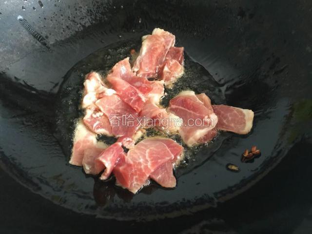 5.锅内放油烧热,放入肉片煸炒片刻。