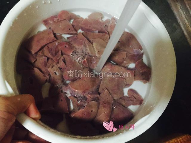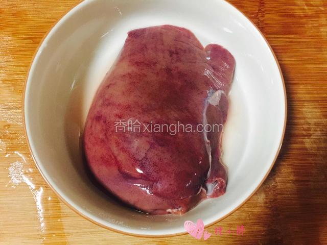 4.冲洗过的猪肝放在碗里,加入水盖住猪肝,浸泡二十分钟去血水