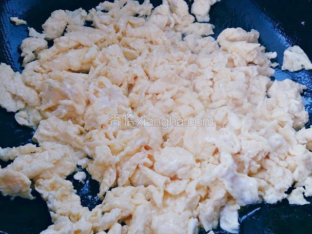 4.快速的滑散翻炒,用铲子把鸡蛋铲碎成小块,关火放凉。
