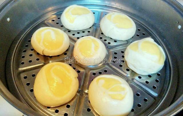 6.烤箱内放一碗开水,面盆盖上盖子,放在烤架上,按下“发酵”键,发酵40分钟。