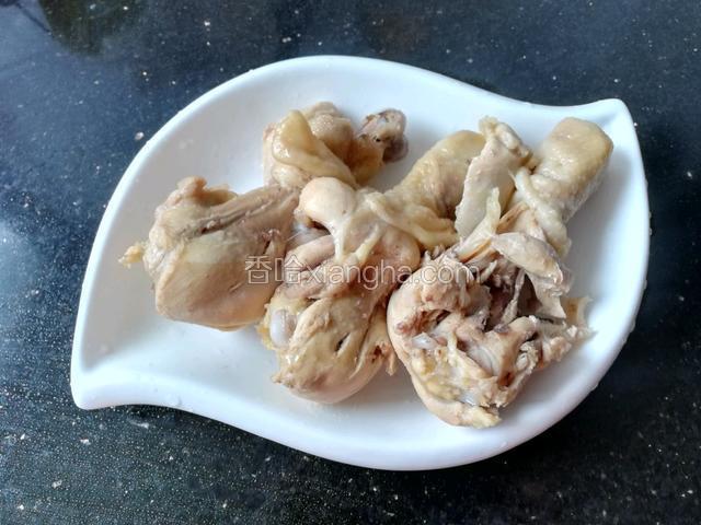 4.继续煮至用筷子扎鸡腿肉厚处不会有血水渗出即可(期间可用筷子多扎几下更易煮熟)。