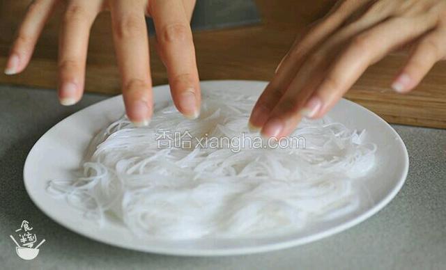 2.粉丝提前泡软,加点酱油和盐,铺在盘底