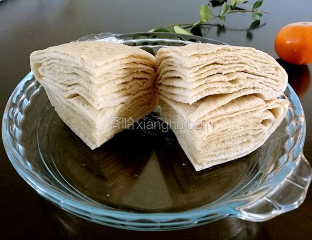 5.擀成长方形的片。