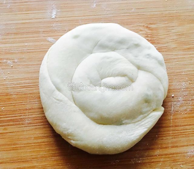 5.将面粉揉成光滑的面团,用潮毛巾盖上醒发半小时。