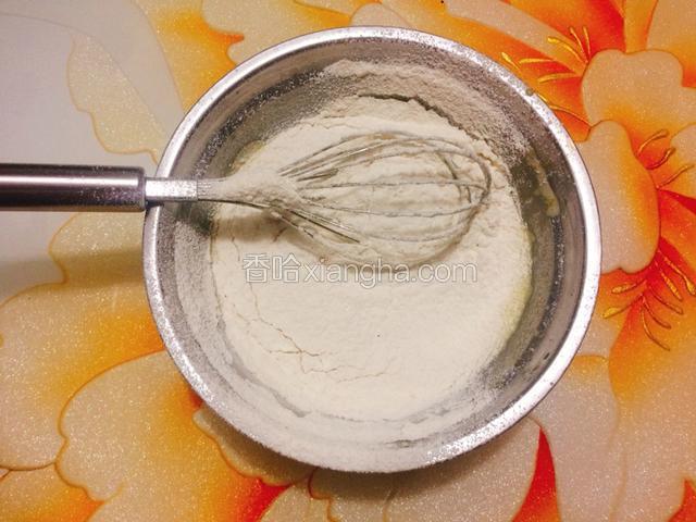 5.筛入低筋面粉,搅拌至顺滑无颗粒的状态,顺滑即可,不要过度搅拌。