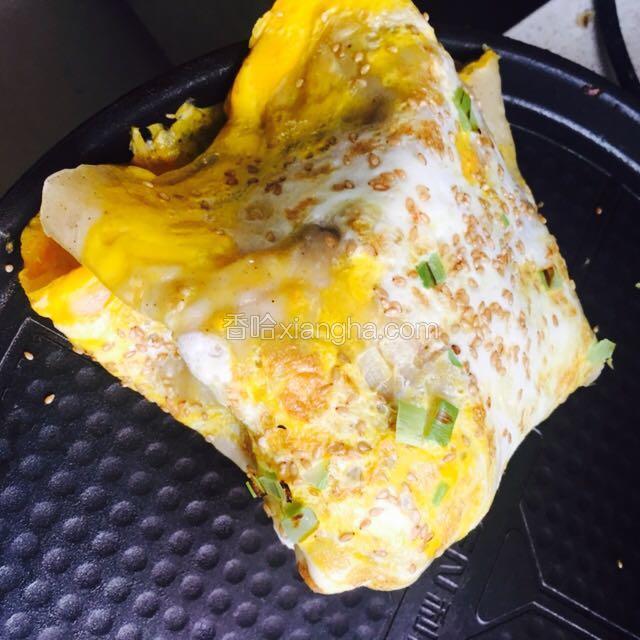 3.将面团擀成薄饼,锅中倒油,炸至两面金黄色,捞出沥油备用(可以用现成的油条代替)