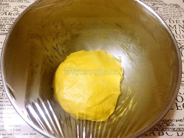 6.把面团揉圆,盖上保鲜膜放温暖处发酵2-2.5倍大
