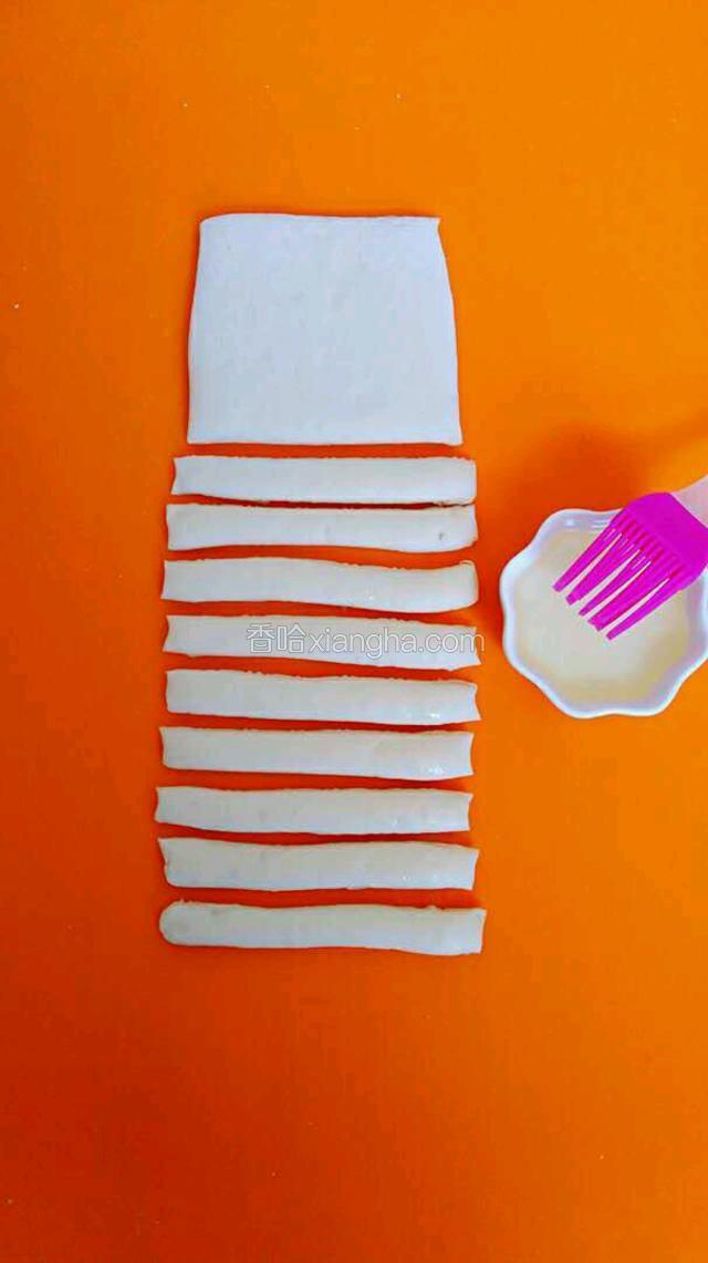 5.切成6毫米左右的细条,再上面刷上油。(多刷点,刷匀)