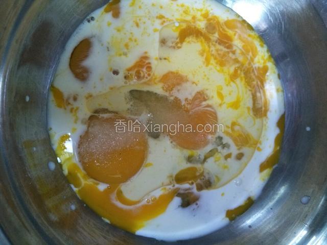 4.蛋黄中加白糖,食用油,牛奶
