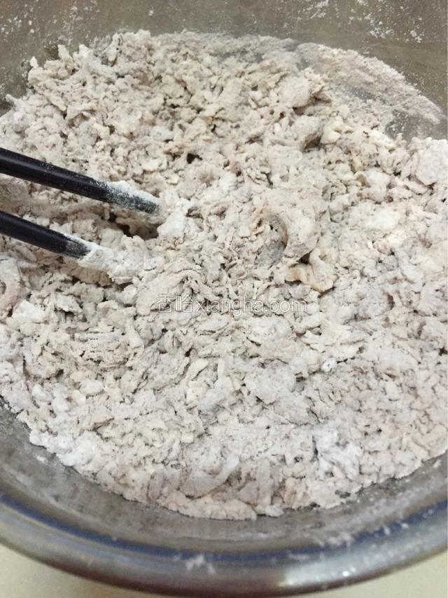 4.倒入酵母倒入适量纯净水搅拌成絮状
