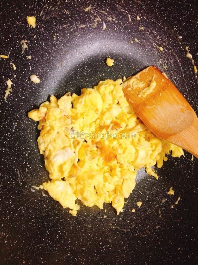 3.锅里下少许油,把鸡蛋倒下去翻炒熟,然后盛出备用。