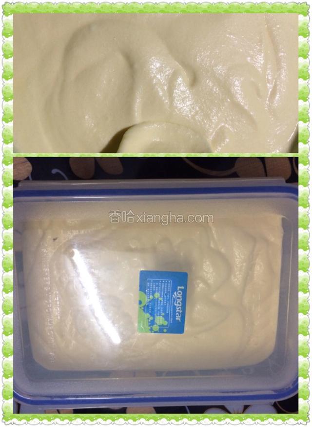 6.棉白糖分二次加入蛋清中,将蛋清打发至干性发泡状态后先暂放入冰箱保鲜