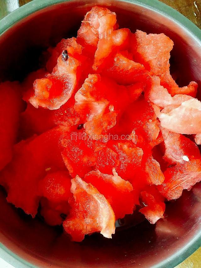 4.打好的西瓜糊,过筛,虑掉渣滓