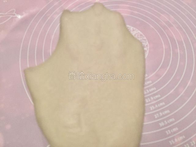 4.将面团揉至完全阶段,直到可以拉出有柔韧性的手套膜;