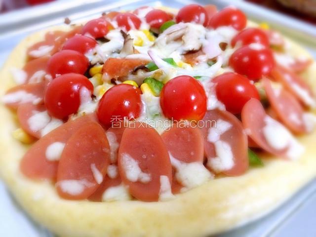 5.拿出来,再撒上剩余芝士,并摆出好看造型,继续烤5-8分钟。