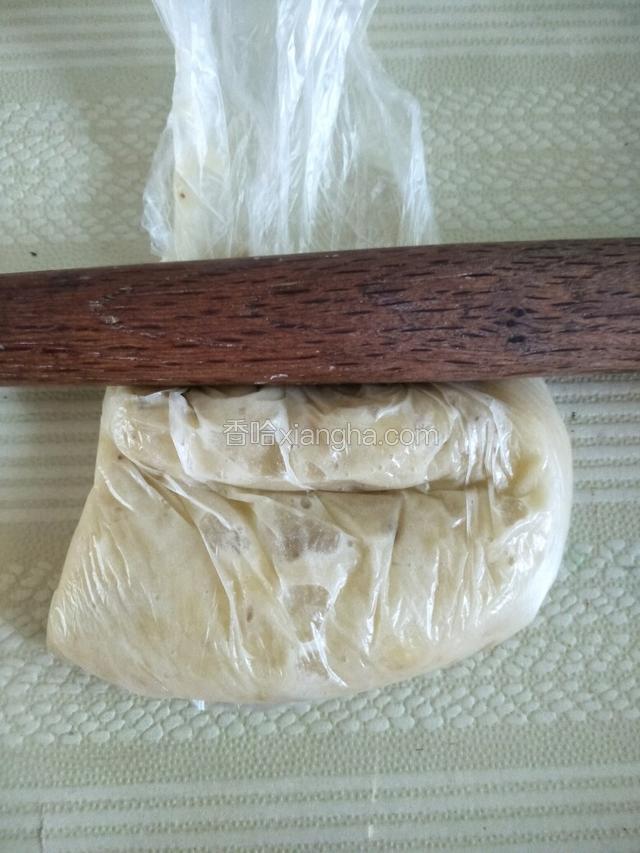 3.香蕉剥皮装入保鲜袋用擀面杖擀成泥