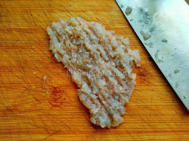5.虾去除头部,同时拔出虾线,再剥去虾壳,只留虾尾一截。