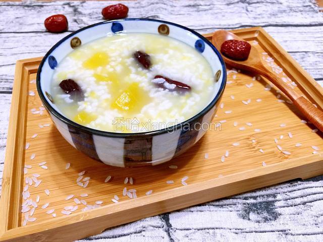 5.把南瓜和红枣放入锅里,加入适量的清水。