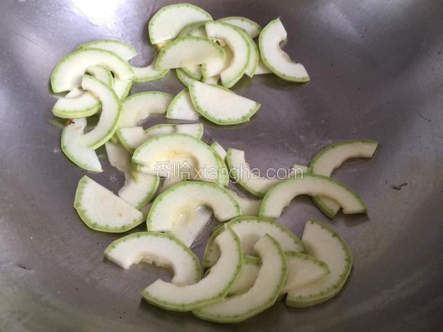 6.锅内再次放油烧热,放入角瓜片翻炒片刻。