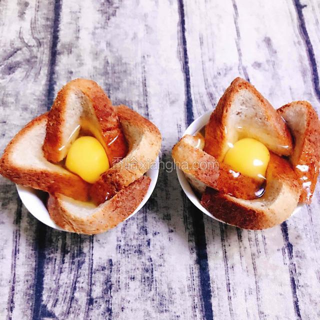 4.烤箱180度预热5分钟,预热好后把吐司杯放进烤箱中层,烤制10分钟就可以了