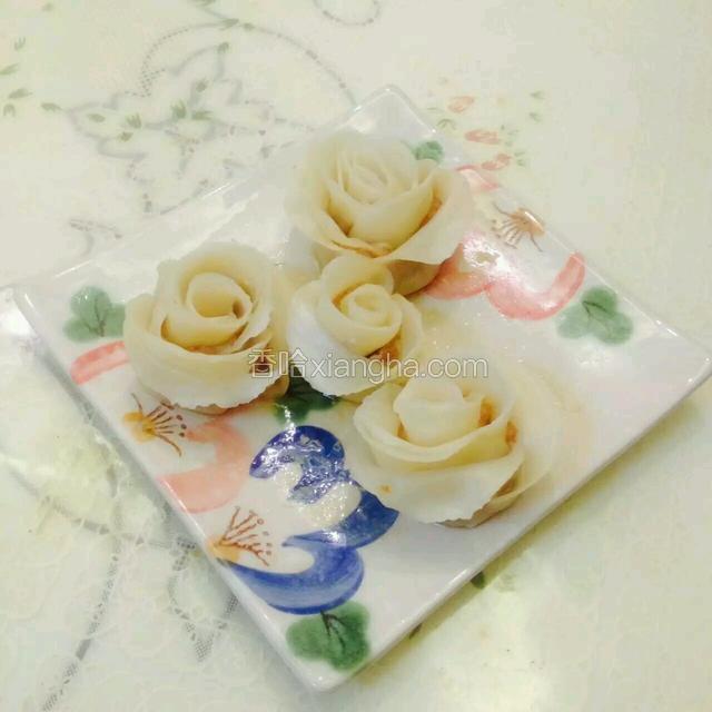 2.饺子皮擀的尽量薄(一个玫瑰花用4张饺子皮)