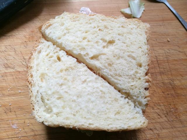 4.然后对角切开就可以吃了。自己吃不讲究土司边就没修。