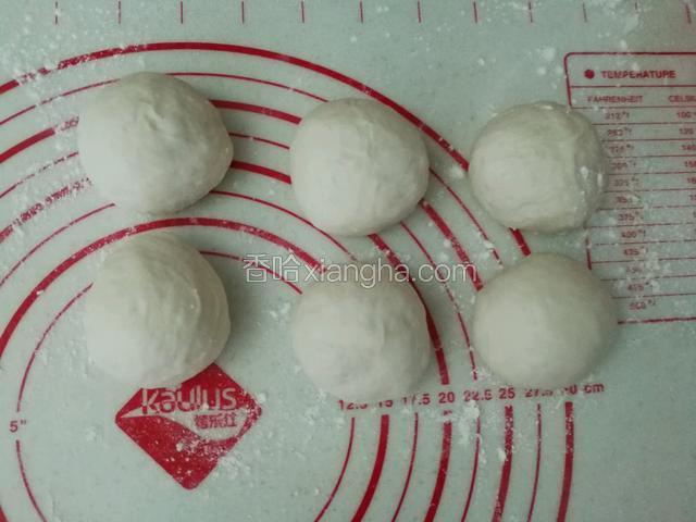 3.把面团放在大碗中发酵至二倍大时取出排气,进行二次发酵。等再次发酵至二倍大时,用手指蘸取少许干面粉在面团中间戳一个洞,如果面团不回缩不粘手就是发酵完成。