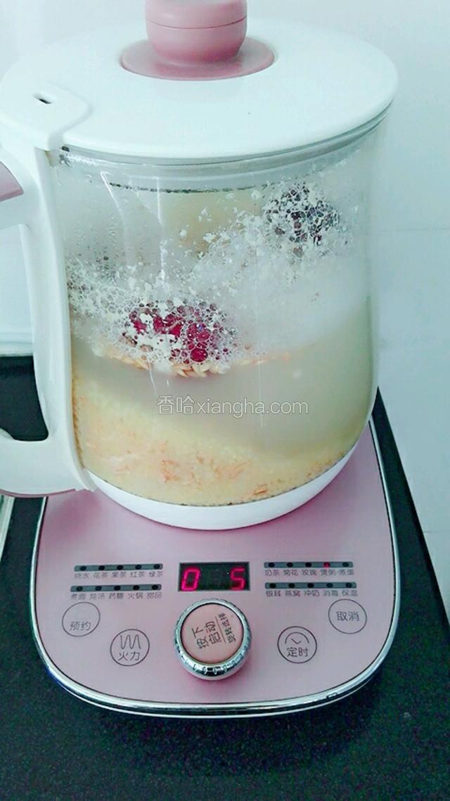 2.米,大枣淘干净放入养生壶中,加入适量水,功能键调到煮粥的位置。