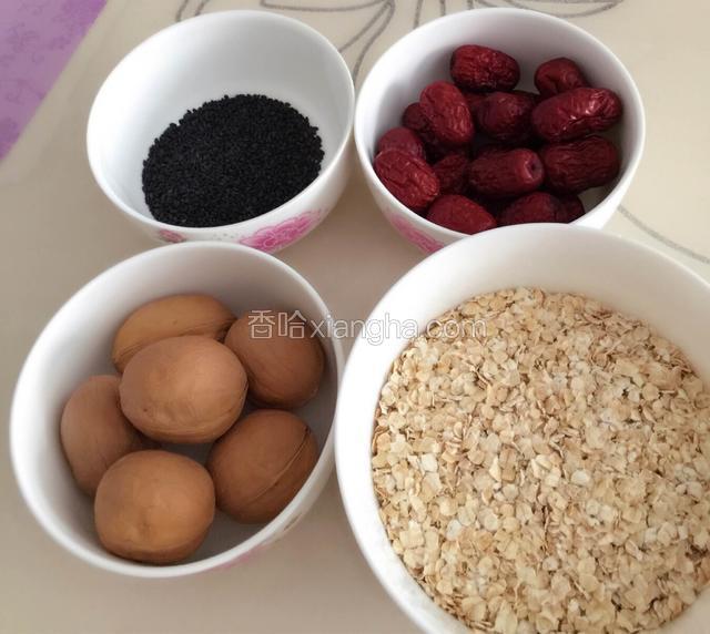 3.芝麻洗净 枣洗净切丝 核桃去皮