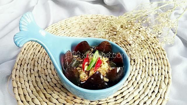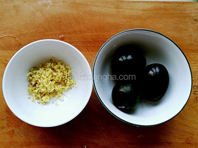 5.将姜汁浇入松花蛋上即可,点缀青红椒丝,也可不放,不影响成菜口味