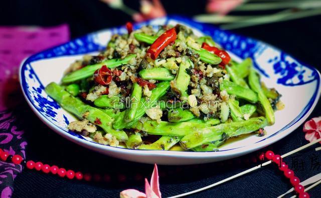 5.油温6成热后放入晾干水分的四季豆中火煸炒。