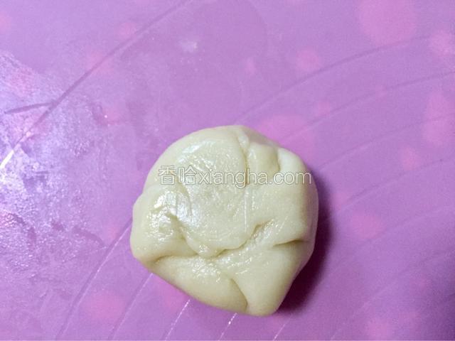 17.将油酥包裹住,将口收牢,避免油酥外漏