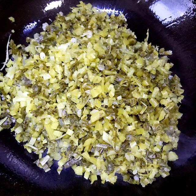 5.锅里放入少许油,放入咸菜翻炒均匀