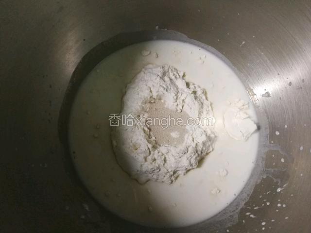 1.把中种材料放入厨师机面桶中,和面10分钟。