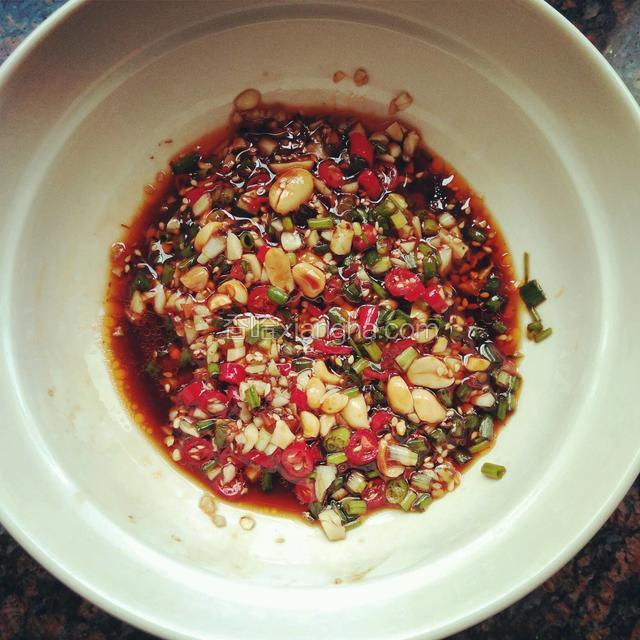 5.准备葱姜蒜末和小米椒,用一个大碗装好
