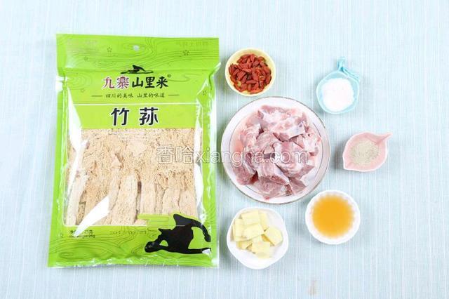 1.准备齐全食材,排骨洗净切成大小均匀的排骨块,姜切大片