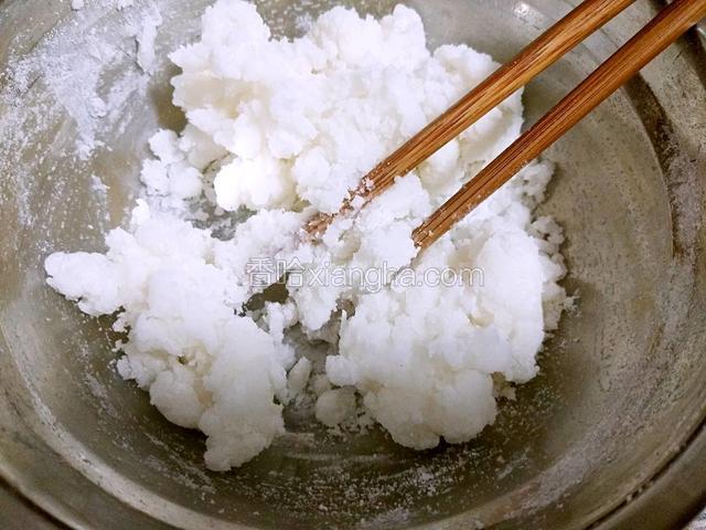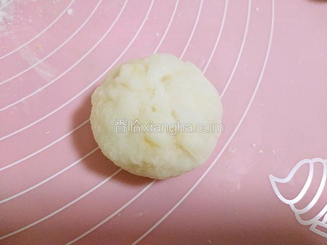 5.揉成不粘手的面团(100克的冰皮月饼粉加水揉成面团后差不多150克左右)