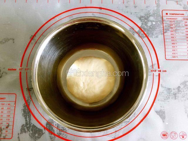2.启动两个和面程序,和成面团。取出揉圆放到盆中,盖保鲜膜常温发酵2倍大。