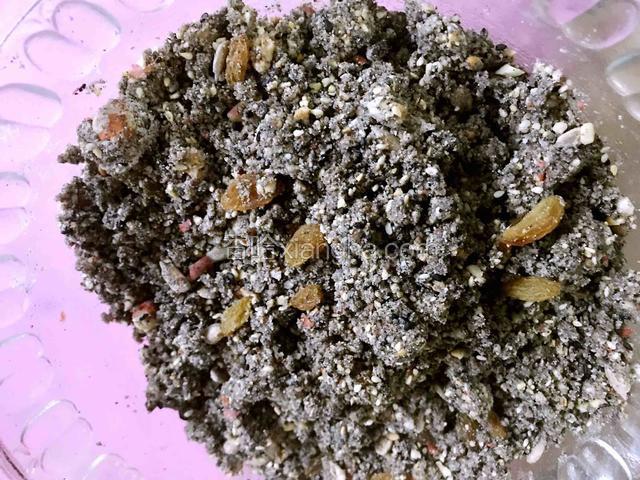 1.将五仁和糯米粉炒熟,放凉